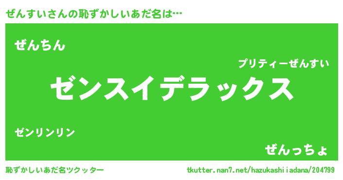 | ヒーロー風カッコイイあだ名 | 『最強戦士ゼンスイ』『ネオゼンスイ』 |