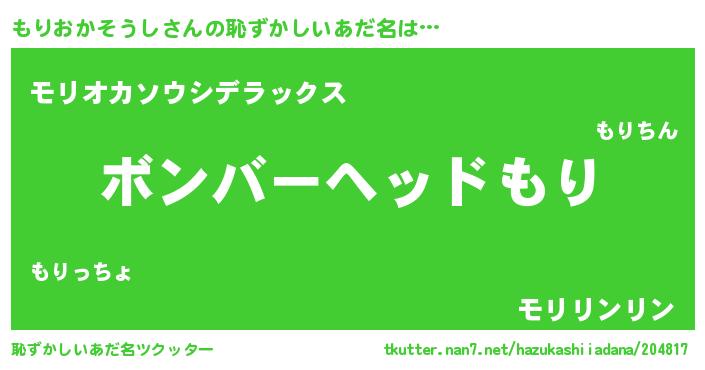 | ヘコむあだ名 | 『もりぷりん』『もりおかそうし(小並感)』 |