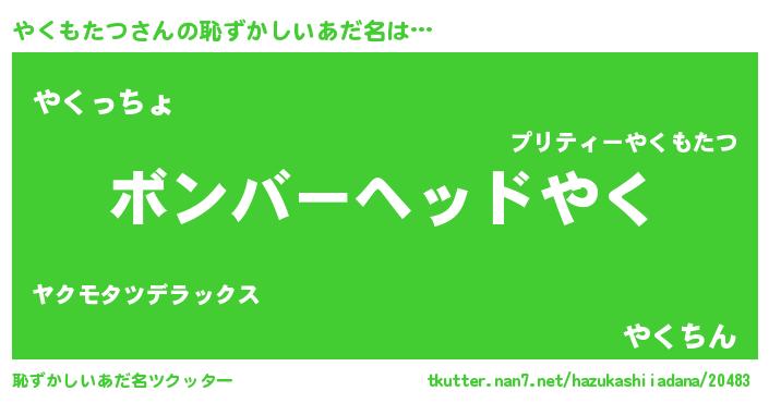 | ヒーロー風カッコイイあだ名 | 『慈愛の使者やくもたつ』『仮面ヤクダー』 |