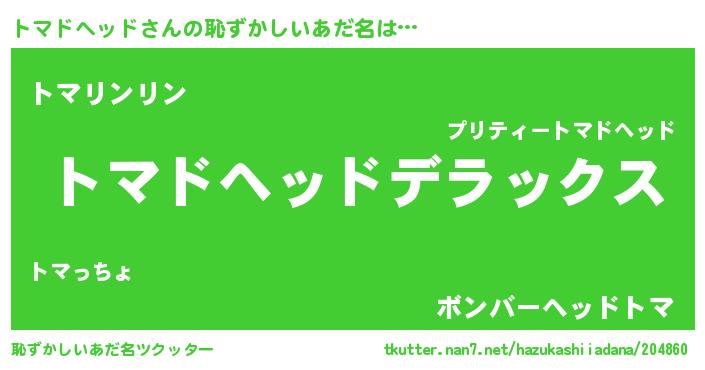 | 意味不明あだ名 | 『自称トマドヘッド』 |
