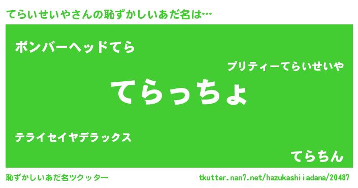 | ヘコむあだ名 | 『なまこ酢』『てらいせいや(小並感)』 |