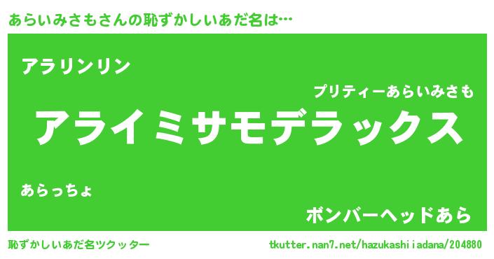 | 意味不明あだ名 | 『自称あらいみさも』 |