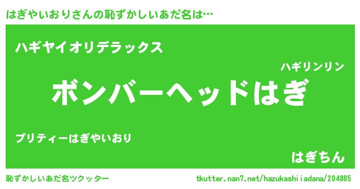 | 男性向けラノベタイトル風あだ名 | 『おまえをオタクにしてやるから、俺をはぎやいおりにしてくれ! 』 |