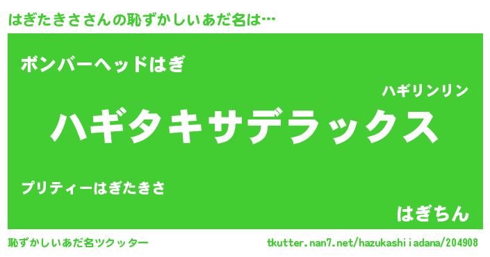 | 意味不明あだ名 | 『自称はぎたきさ』『永久保存はぎたきさ』 |