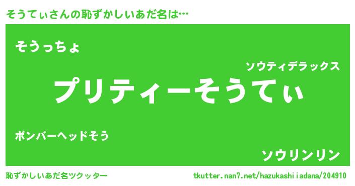 | 意味不明あだ名 | 『住所不定無職そうてぃ(85歳)』 |