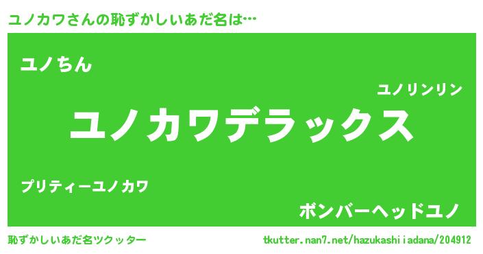 | 意味不明あだ名 | 『自称ユノカワ』『永久保存ユノカワ』 |