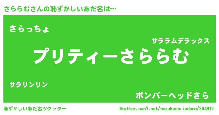 | 意味不明あだ名 | 『ペロリンさららむ』『自称さららむ』 |