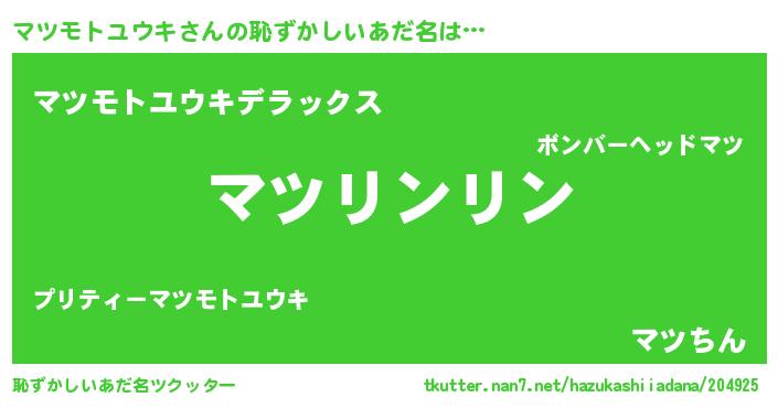 | ポケモン風あだ名 | 『ヒマツモトユウキ』『マツゴンZ』 |