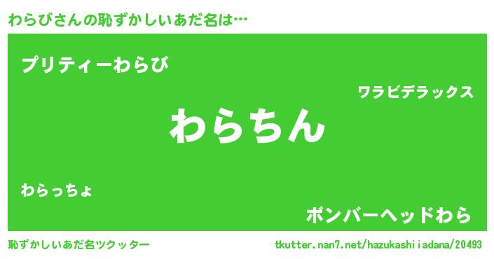 | ヘコむあだ名 | 『わらび(苦笑)』『わらにー』 |