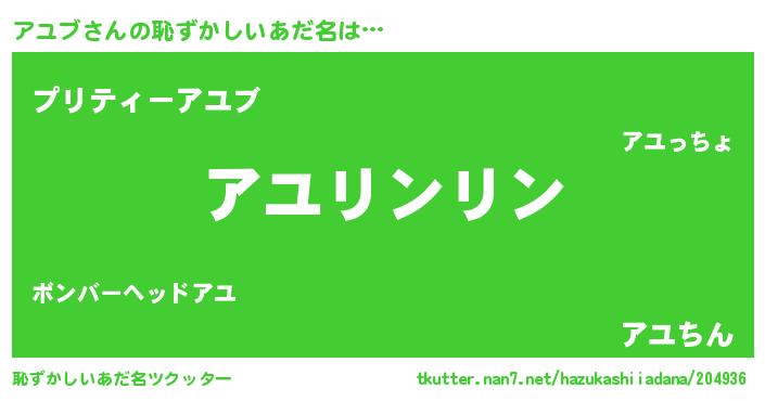 | ポケモン風あだ名 | 『アユゴンZ』『アーユイ』『ヒアユブ』 |