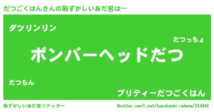 | ヒーロー風カッコイイあだ名 | 『天空の使者だつごくはん』 |
