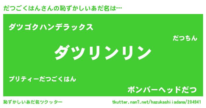 | ポケモン風あだ名 | 『ヒダツゴクハン』『ダツセウス』 |