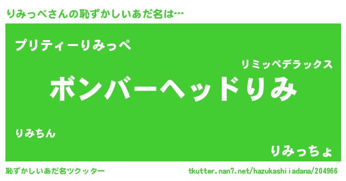 | ヒーロー風カッコイイあだ名 | 『正義の使者りみっぺ』『ネオリミッペ』 |
