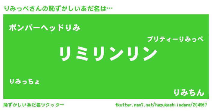 | 意味不明あだ名 | 『住所不定無職りみっぺ(86歳)』 |