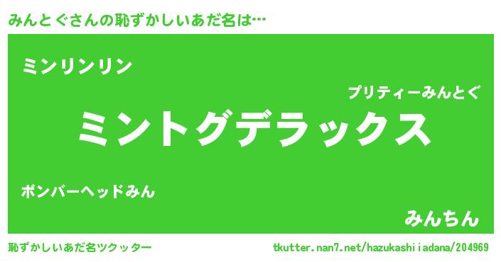 | 意味不明あだ名 | 『自称みんとぐ』『しいたけ科みんとぐ属』 |
