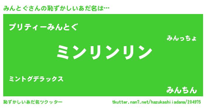 | ポケモン風あだ名 | 『ミンキング』『ヒミントグ』 |