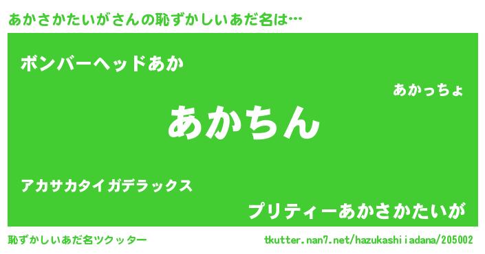 | ヘコむあだ名 | 『あかさかたいが(笑)』『あかふぇ~』 |