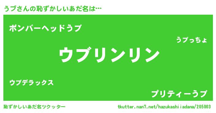 | ヒーロー風カッコイイあだ名 | 『魔戒騎士ウブ』『仮面ウブダー』 |