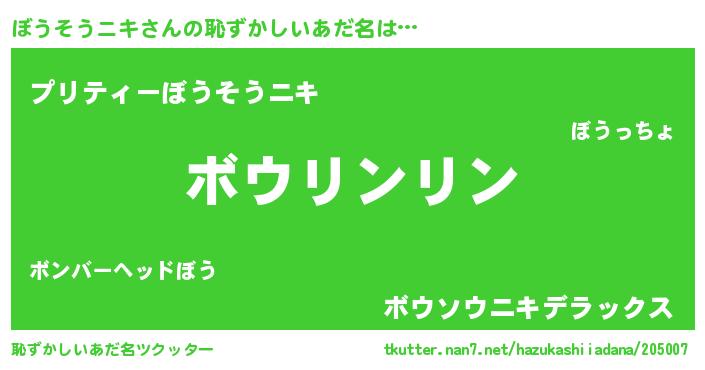 | ヘコむあだ名 | 『ぼうぷりん』『ぼうにゅー』 |