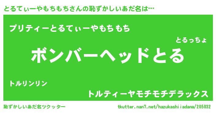 | 可愛いあだ名 | 『とるちゅっちゅ』『とるぷりん』 |