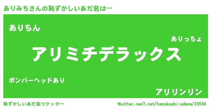 | ヒーロー風カッコイイあだ名 | 『超時空戦士アリミチ』『仮面アリダー』 |