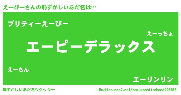 | 意味不明あだ名 | 『たけのこ科えーぴー属』『自称えーぴー』 |