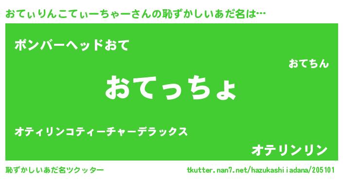 | 欧米人風あだ名 | 『おてぃりんこてぃーちゃークリステル』 |