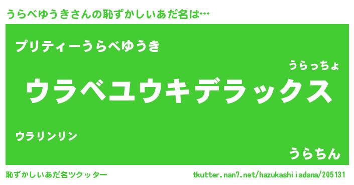 | 欧米人風あだ名 | 『うらべゆうき・ステッグマイヤー』 |