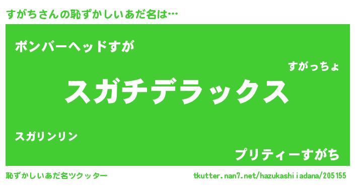 | 意味不明あだ名 | 『自称すがち』『眠気覚ましガムすがち味』 |