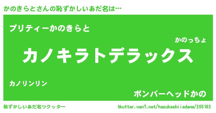 | 意味不明あだ名 | 『自称かのきらと』『ペロリンかのきらと』 |