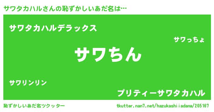 | ヘコむあだ名 | 『サワタカハル(笑)』『サワふぇ~』 |