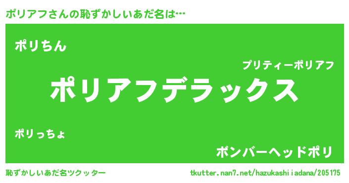 | 女子向けラノベタイトル風あだ名 | 『ポリアフなんてお断りですっ。』 |
