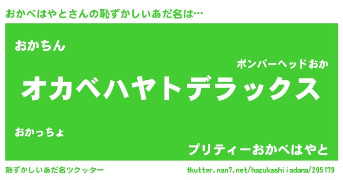 | 意味不明あだ名 | 『自称おかべはやと』 |