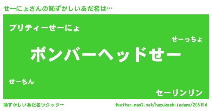 | ヒーロー風カッコイイあだ名 | 『天空の使者せーにょ』『幻影騎士セー』 |
