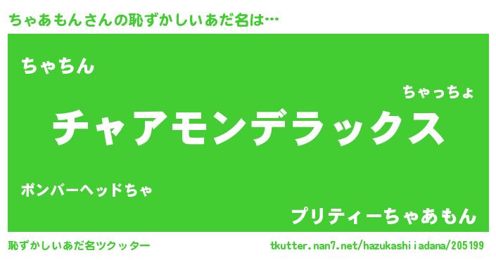 | 意味不明あだ名 | 『自称ちゃあもん』『永久保存ちゃあもん』 |