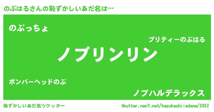 | 意味不明あだ名 | 『とにかく怪しいのぶはる』 |