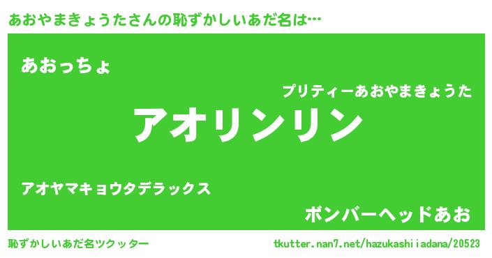 | 意味不明あだ名 | 『とにかく怪しいあおやまきょうた』 |
