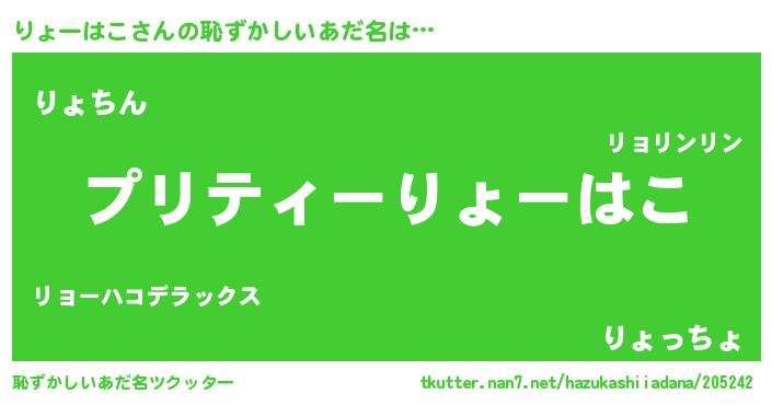 | ヘコむあだ名 | 『りょっふぃ~』『りょーはこ(遠い目)』 |