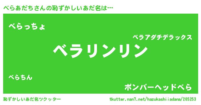 | 意味不明あだ名 | 『とにかく怪しいべらあだち』 |