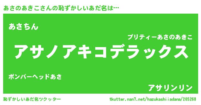 | ヒーロー風カッコイイあだ名 | 『ウルトラ戦士アサノアキコ』 |