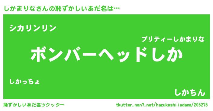| 女子向けラノベタイトル風あだ名 | 『しかまりな恋絵巻』 |