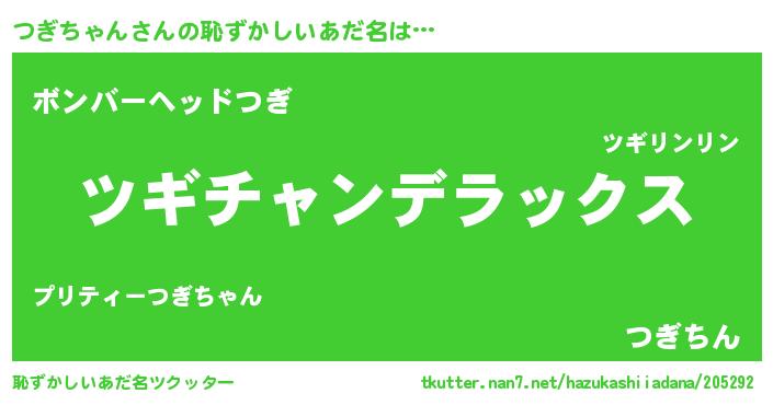 | 意味不明あだ名 | 『自称つぎちゃん』『永久保存つぎちゃん』 |