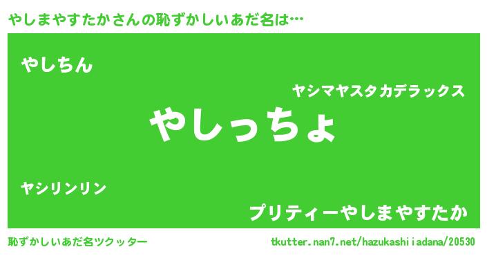 | 欧米人風あだ名 | 『やしまやすたかクリステル』 |