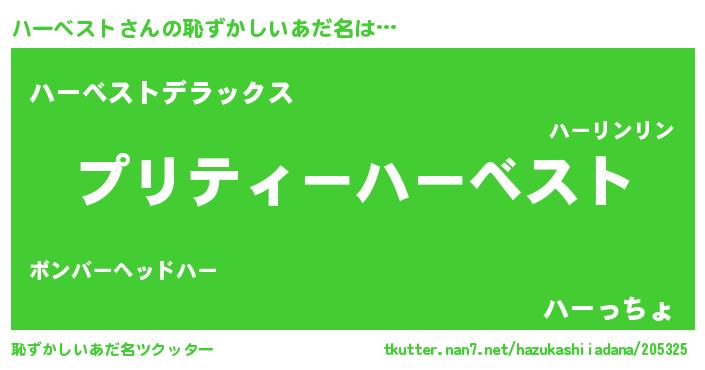 | ヒーロー風カッコイイあだ名 | 『スーパーハーベスト』『銀牙騎士ハー』 |