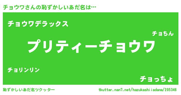 | 欧米人風あだ名 | 『トリンドルチョウワ』 |