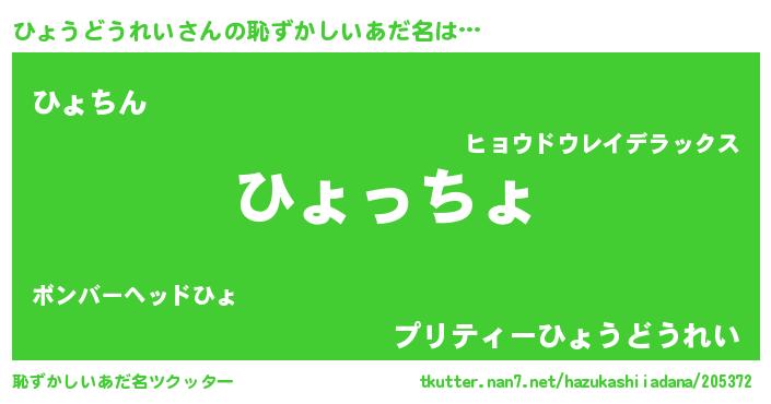 | 意味不明あだ名 | 『ひょうどうれいフォーエバー』 |