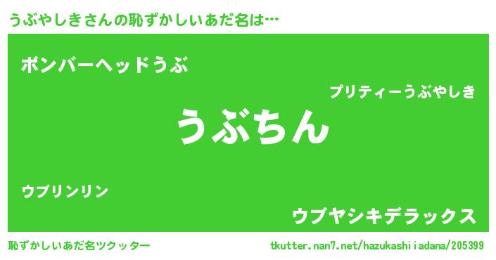 | ヘコむあだ名 | 『うぶやしき(笑)』『うぶにゅー』 |