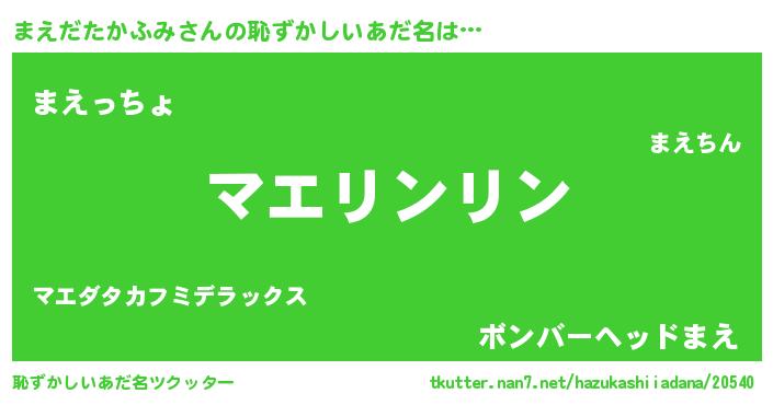 | 欧米人風あだ名 | 『アンジェラ・まえだたかふみ』 |