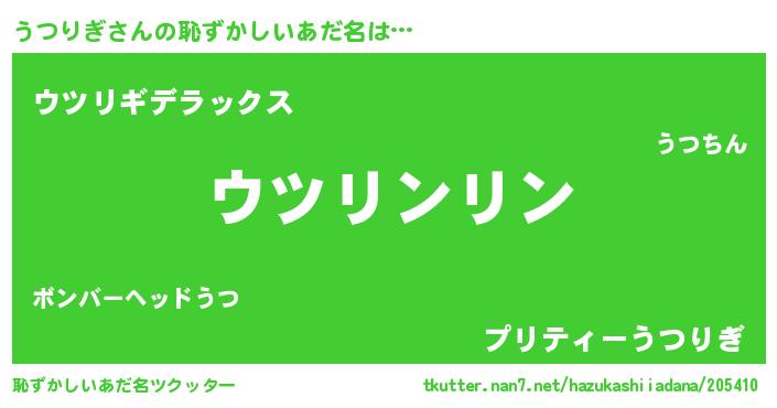 | 女子向けラノベタイトル風あだ名 | 『うつりぎは平凡を望む』『闇のうつりぎ』 |