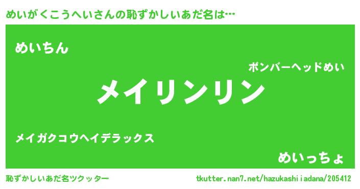 | 意味不明あだ名 | 『とにかく怪しいめいがくこうへい』 |